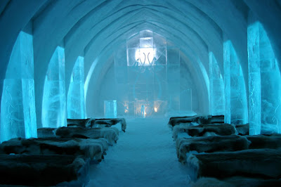 Puedes escoger entre un hotel y la capilla de hielo , donde todo, asientos, camas, mesas, vajillas...son de hielo, ... o, ¿por qué no un igloo para pasar la noche?.Canada, Suecia, Noruega o Finlandia, elige uno de los muchos paquetes que ofrecen estos destinos, para ti y tu pareja...e invitados!.