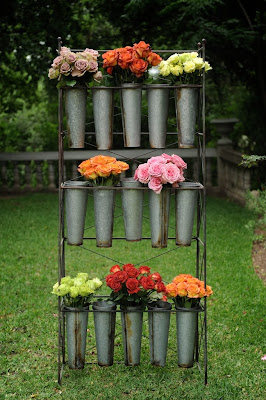 Como decoración un simple expositor con rosas, que después de la boda los invitados pueden llevarse de recuerdo.