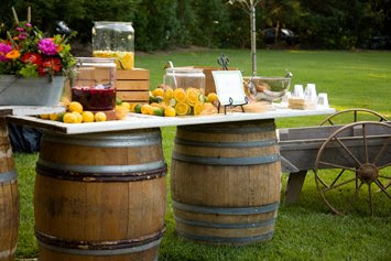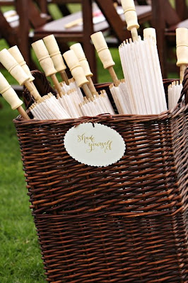 Si celebras tu boda al aire libre pon unas bonitas sombrillas en contenedores para que tus invitados puedan servirse.