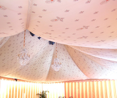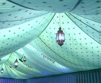 Me encantan las carpas, con doble techos de telas estampadas y preciosas lámparas colgando...