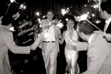 La fiesta ha terminado y la pareja está a punto de marcharse...Me gusta la idea de despedirse haciendo un pasillo de bengalas.