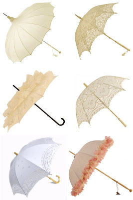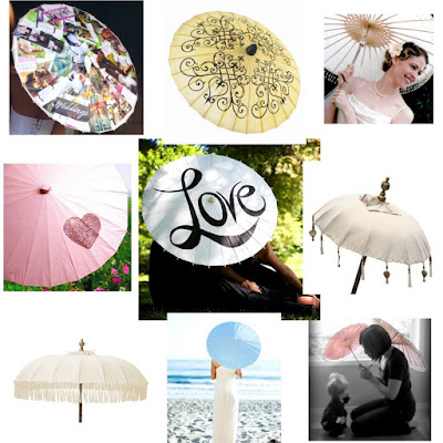 Comienza el otoño, y empiezo a mirar al cielo con desconfianza...Después de un magnífico verano (al menos por estas latitudes...), temo que pronto tengamos que sacar el paraguas para no dejarlo hasta el verano...(Ufff!, supongo que exagero un poco). Sed precavidas, buscad un bonito paraguas que no desentone con vuestro vestido, estilo de boda, ni arruine una buena fotografía.